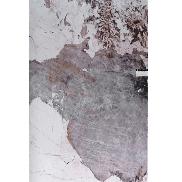 Vert Galaxie is a striking marble slab that channels the mystique of a starry night sky. Its soft grey base is interwoven with dramatic white, beige, and charcoal veining—creating a fluid, celestial pattern that feels both grounded and otherworldly. The polished surface magnifies the depth and contrast of each vein, turning every slab into a unique piece of natural art.